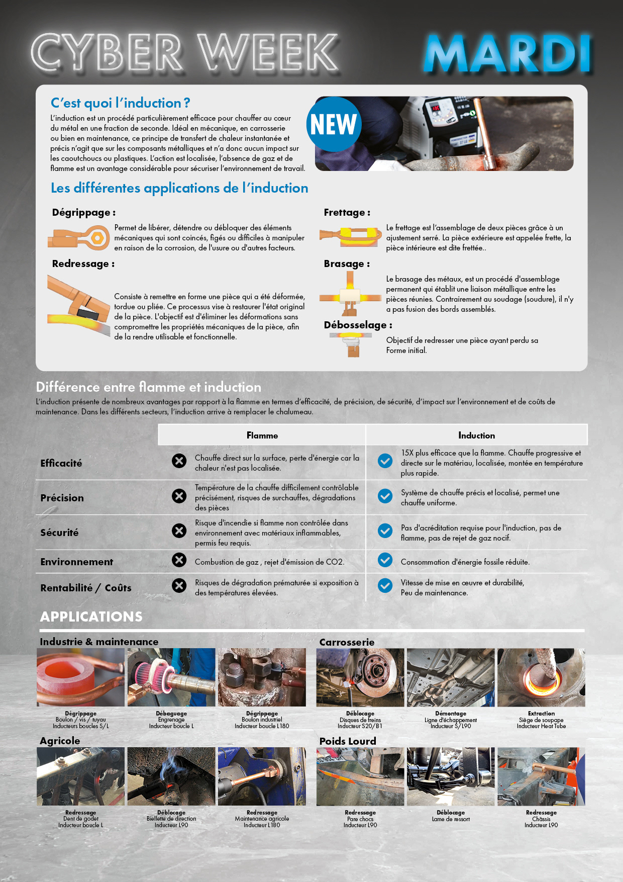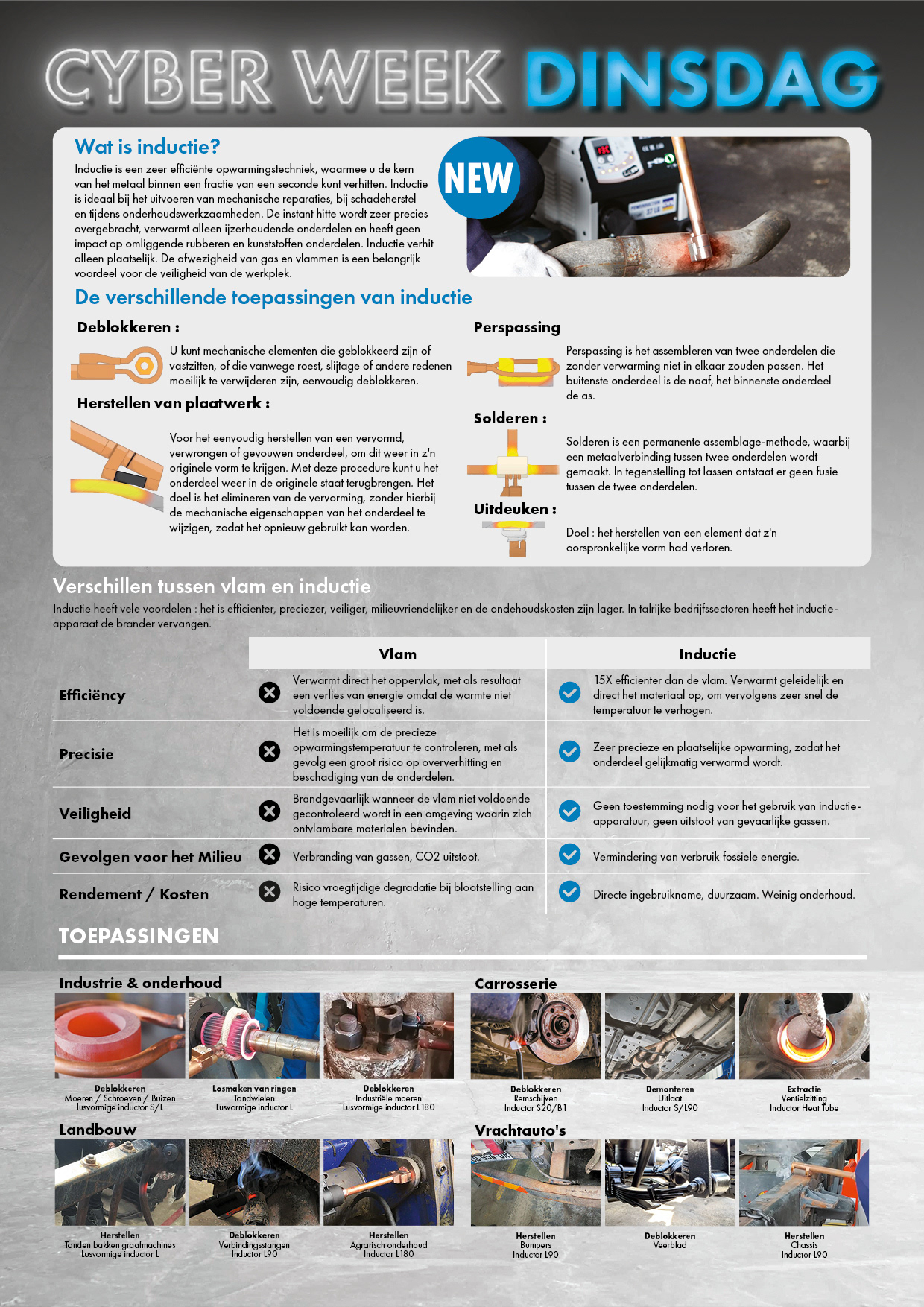 Tuesdays promotion concerned a new product line so as well as the product flyers, we prepared an information page to educate the customer about the new line of Induction welders.